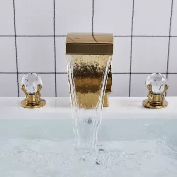 Waterfall Bathroom Basin Faucet - Deck Mounted Cold & Hot Water Mixer, 3 Holes